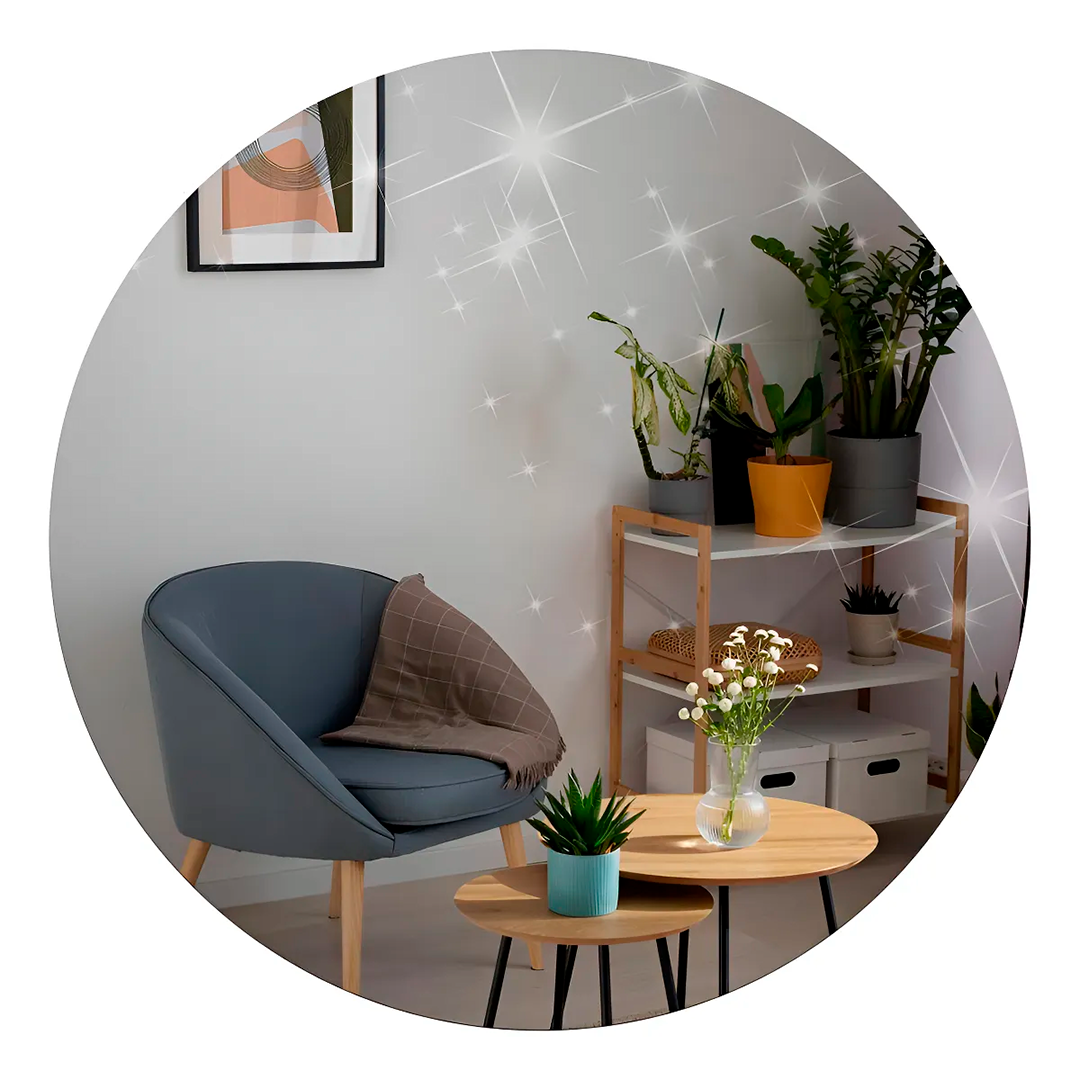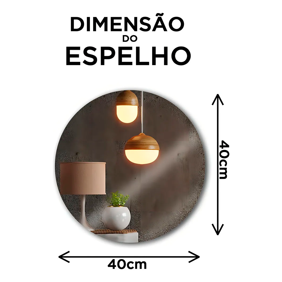 Com um tamanho ideal de 40cm, este espelho é compacto, porém impactante. Ele se adapta facilmente a diversos espaços, tornando-se ideal para salas pequenas e grandes, dando uma sensação de amplitude e luminosidade ao ambiente.